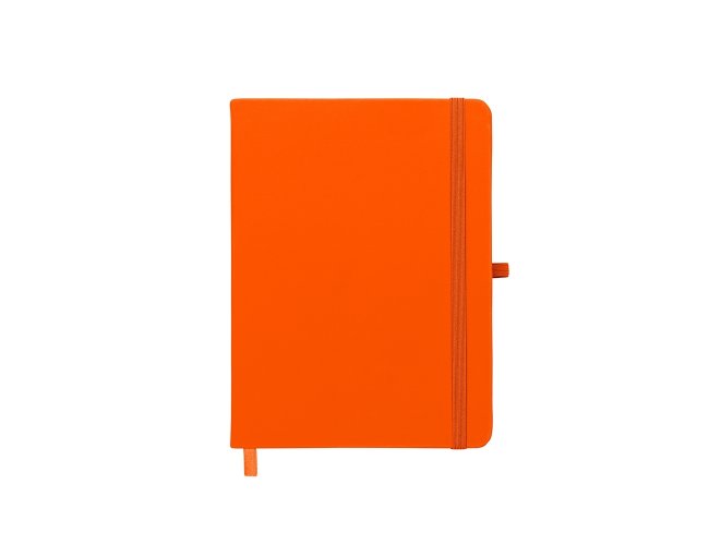 Caderneta emborrachada com porta caneta em nylon, marcador de página em cetim e fita elástica para lacre. Contém aproximadamente 80 folhas pardas sem pauta. OBS.: PEDIDOS MÚLTIPLOS DE 5 PEÇAS!