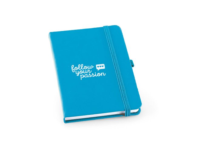 Caderno A6 de capa dura em c. sintético, com 160 páginas lisas. 90 x 140 mm