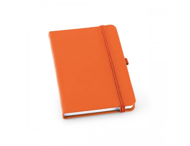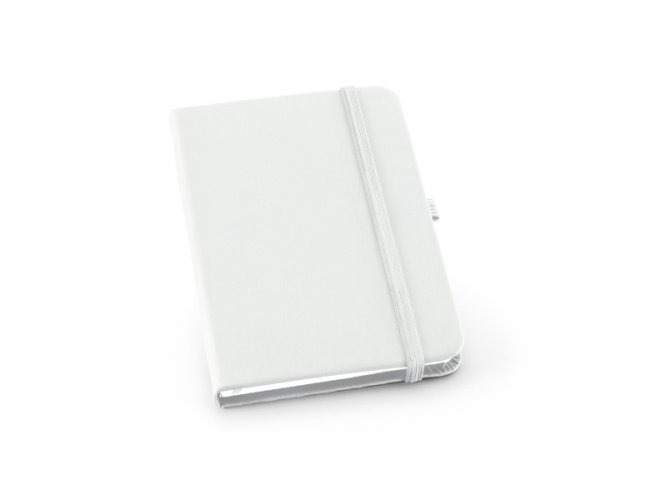 Caderno A6 de capa dura em c. sintético com 160 páginas pautadas. 90 x 140 mm