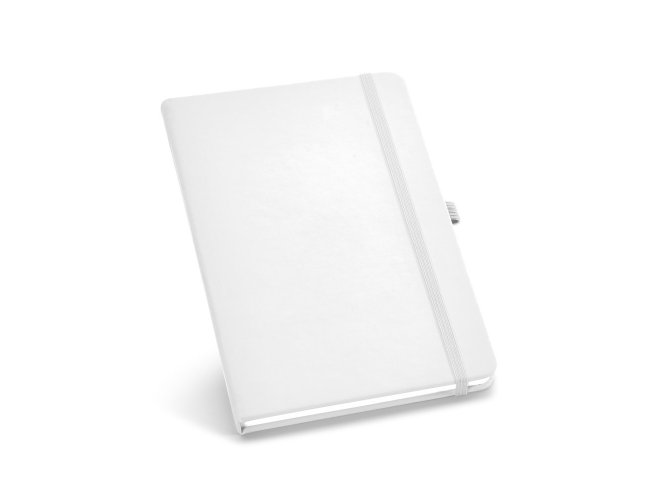 Caderno B6 de capa dura em c. sintético com 160 páginas lisas. 120 x 170 mm