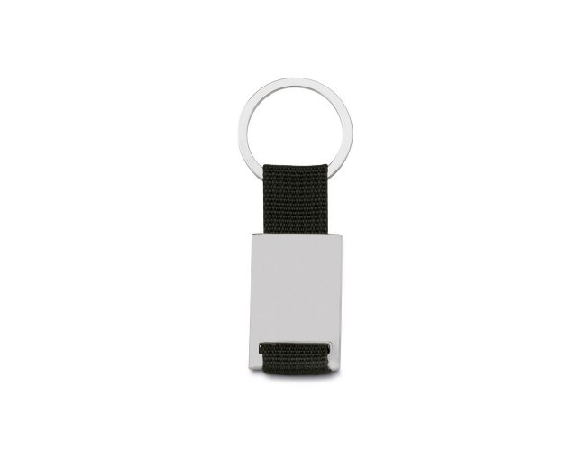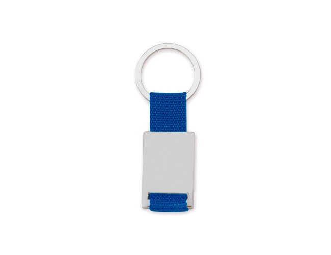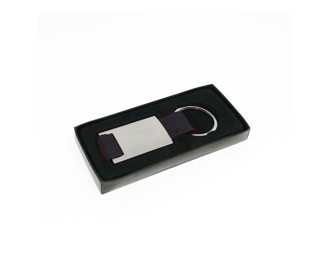 Chaveiro de metal retangular com detalhes em nylon + caixa com berço aveludado. Obs.: Frente e versão são iguais.