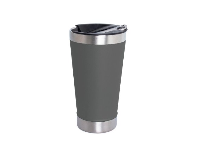 Copo térmico de inox com acabamento liso e capacidade 500ml, material livre de BPA. Contém tampa com abridor.