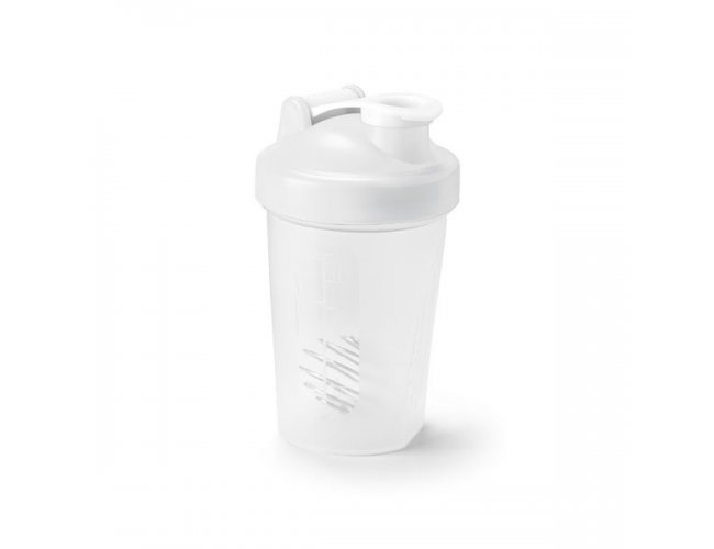Shaker. PP e HDPE. Com misturadora em aço inox e escala de medição até 400 ml/12 ft oz. Capacidade até 550 ml. Food grade. Caixa branca 94654 vendida opcionalmente. ø93 x 160 mm