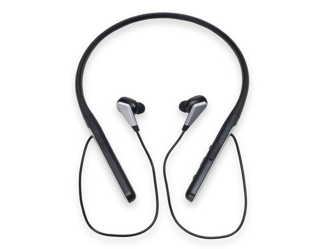 Descrição: Fone de ouvido bluetooth com haste para pescoço. Possui microfone para atendimento de chamadas telefônicas, botões liga/desliga, + e – na haste, acompanha USB.