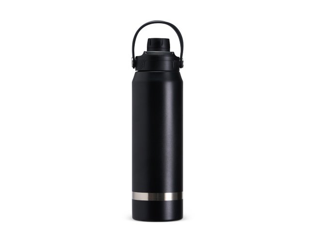Garrafa térmica em inox 304 com capacidade para até 800ml. Possui estrutura de parede dupla e vedação a vácuo, permitindo a conservação da temperatura de líquidos por mais tempo. Conta ainda com tampa plástica rosqueável com protetor para o bocal, além de alça para transporte.