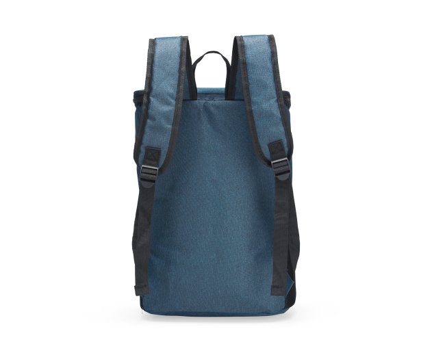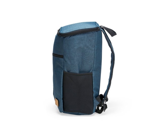 Mochila térmica confeccionada em poliéster catiônico 300D resistente à água e capacidade máxima para até 18 litros. Possui revestimento térmico antivazamento em PEVA atóxico no compartimento principal, além de um bolso frontal com fechamento em zíper, dois bolsos laterais em espuma com elástico, duas alças para as costas e uma alça de mão em nylon. Acompanha plaquinha em couro sintético fixada com velcro.