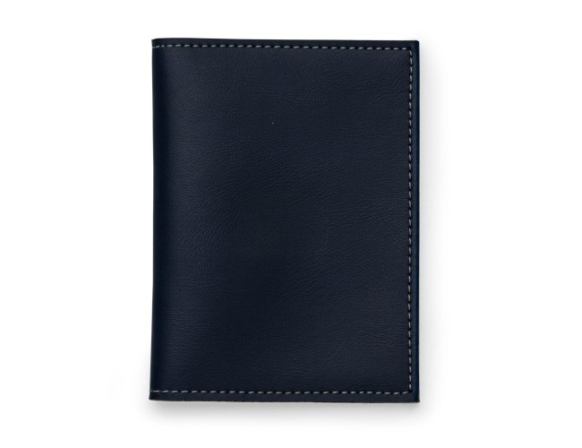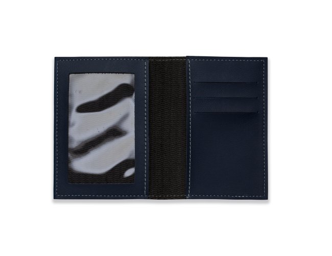 Porta documento Bidins em couro sintético, capa frente e verso lisa, parte interna com bolso de visor plástico e três divisórias no próprio couro com bolso lateral.