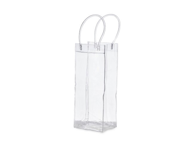 Sacola plástica para gelo com alça. Icebag serve para transportar garrafas exemplo: vinho, champagne, vodka... Basta colocar gelo e transportar seu cooler prático. OBS.: Para prolongar a vida útil do material pvc, atente-se as condições ideais de armazenamento: mantenha o material em local seco e arejado, livre da exposição ao sol e altas temperaturas. Após a utilização da icebag com gelo, certifique-se de secar completamente o material antes de guardá-lo, pois o armazenamento deste em estado úmido poderá comprometer a sua vida útil.