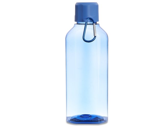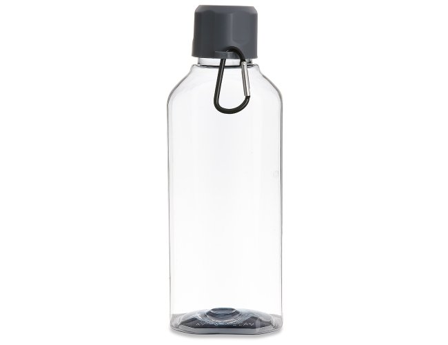 Squeeze plástico 730ml com tampa rosqueável e mosquetão colorido.